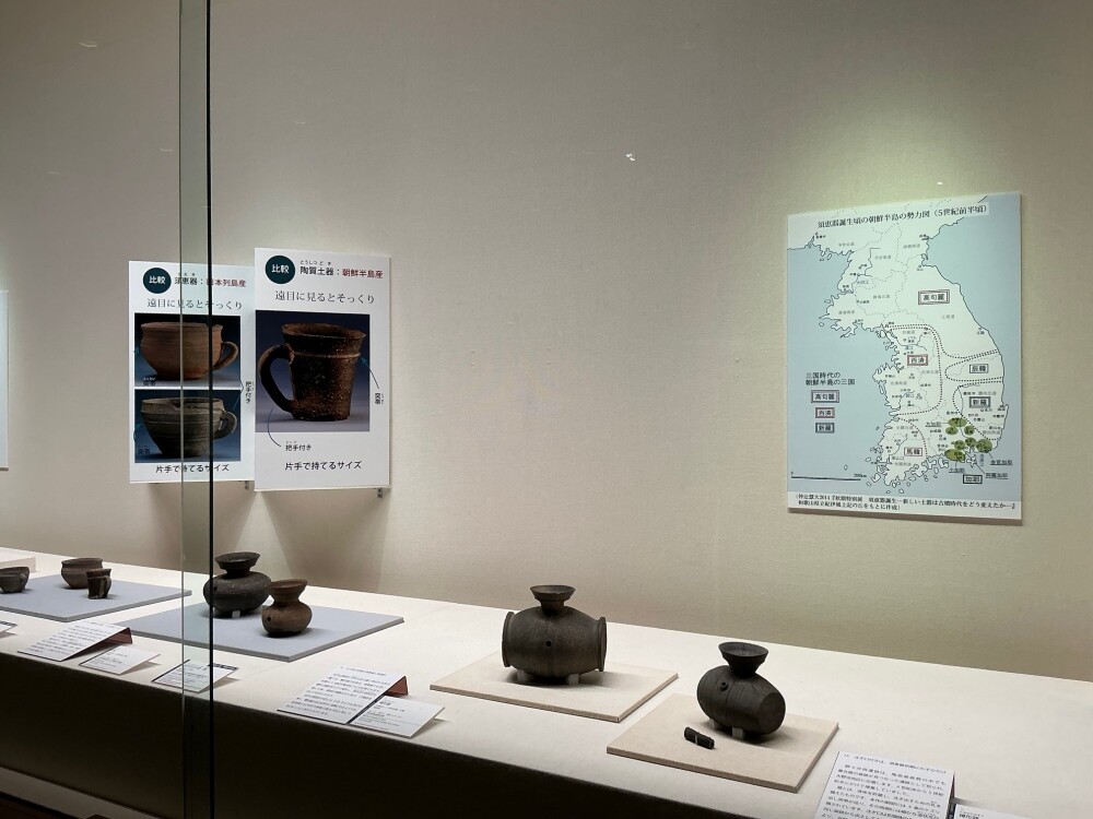 須恵器の製法は、古墳時代の4世紀末から5世紀初頭に、朝鮮半島から伝来した。本章では、朝鮮半島で作られた「陶質土器」と日本列島で作られた「陶質土器=須恵器」を比較しながら、その類似点と相違点をわかりやすく展示している。