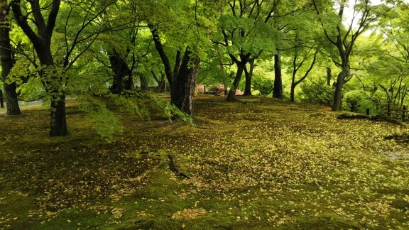 じゃじゃぶりのお蔭で、雨に葉っぱも苔も洗われて、生き生きと輝いていました。