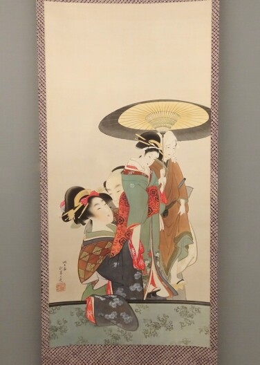 北野恒富筆《美人》は、月岡芳年門下の稲野年恒に入門してその系譜にあり、夜にハイカラな灯籠に火を入れる女性を描き「夜目、遠目、笠の内」の要素を持つ。近代の美人画家たちは、過去の技術を踏襲しながら自分のものとして当世風の美人画を描きました。