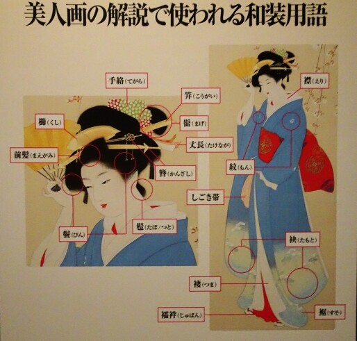 美人画では、着物や帯の柄だけでなく、年齢や場にあった髪形も見どころで、時代を写しその時代の風俗をも伝えています。