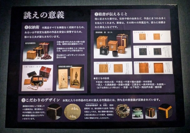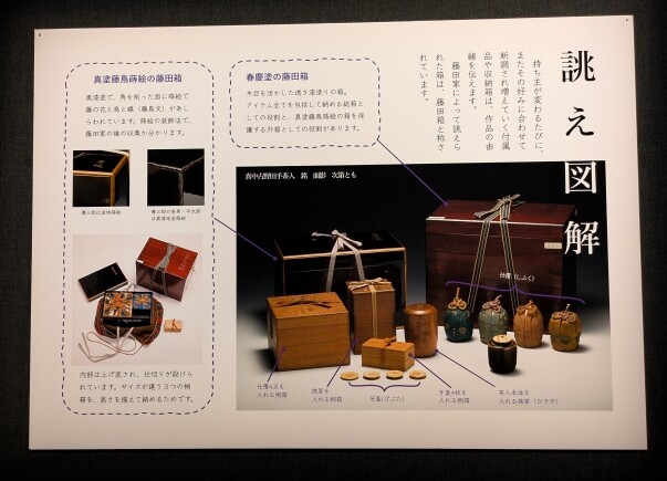 今回のお箱、茶道具の次第を拝見して思い出しました!「畠山記念館の名品」@京博でお目にかかった 重要文化財《唐物肩衝茶入 銘 油屋》畠山記念館蔵。不昧公がこの茶入をいたくお気に召して、参勤交代のときも一式を圜悟克勤墨蹟「流れ圜悟」(国宝)と一緒に笈櫃に入れて自分より先を歩かせて共に往来したとのこと、一時も目を離せられない茶道具なのでした。