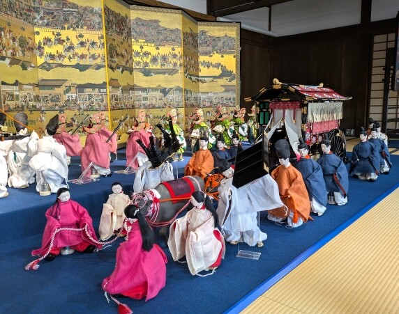元離宮二条城・番所では、2025年10月31日~2026年1月20日に寛永行幸行列の一部を表現した1/4スケールのミニアチュア人形(約100体、全長約10m)が展示されています。(★展示は令和8年1月20日(火)まで期間を延長されています。)