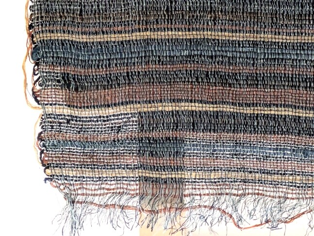 上賀茂南大路に300坪の広大な社家の空家を借りて、民藝の実践の場として中世ギルドに範を取った協団「上加茂民藝協団」が設立され、若い製作者たちが参加しました。木漆工芸家の黒田辰秋もその一人として参加しており、黒田の民藝との接点でした。黒田の作品は目にすることも多いですが、名前はあがるがその作品を目にすることがなかった青田五良の作品が本展では展示され、本展で青田の染織作品は特に目を惹きました。青田の染織への思いも詳しく説明されていました。青田は柳の理想を実践しようとしたのではないでしょうか。「正しい工藝」「無心の美」を生み出す「正しい織物」を作ろうとし、自らの手で染める植物染色、撚りをかけた丈夫な糸を用いて、経糸緯糸が等しい強さを持つ丈夫な織物を制作しますが、37歳で亡くなってしまいます。彼の染織は、「穏やかな色調の中に鮮やかな色糸を織り込み、伝統的な技術に基づきながらも、荒々しさと繊細の双方を兼ね備えている」と説明されていました。