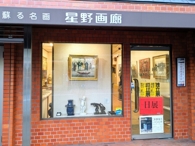 星野画廊さんへも寄ってみました。何気なく入ったのでしたが、独立美術協会会員で京都市立芸術大学教授でもあった中村善種の「マヌカンと都会の憂鬱を描く没後30年・中村善種遺作展」開催中でした(12/14まで)展示されている作品にも惹かれ、中村を良く知る方と星野さんの会話に耳を傾けてその人柄、作風などを伺いました。星野画廊を出て直ぐお隣のギャラリー胡々湾にも呼ばれるように入ってしまいました。「長尾博昭作品展 今あり(線と色と形」(12/7まで) 岩絵具を使った作品でした。長尾さんは退職後造形大で学び直し、独自の画風を追及されています。ギャラリーで展示中の《存在意義》が、兵庫県第62回「2025県展」絵画部門で二席 兵庫県立美術館賞を受賞されていました。作家さんからも興味深いお話を色々と伺いました。