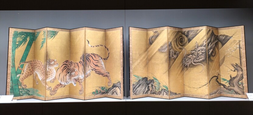 重要文化財《龍虎図屏風》狩野山楽筆 6曲1双 紙本金地著色 桃山時代(17世紀)京都・妙心寺 通期 第1会場