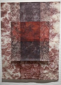 油彩画乾燥中。表面は乾いてきました。来年2月の個展で展示予定です。ペインティングナイフで何層か厚く重ねて、文様を彫っていっています。2026年2月9日(月)ー14日(土)ギ…