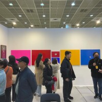 ソウルのアートフェアに出品しています。「絵の具の絵」です。日本画の絵具皿に、油絵具を出したものを原寸大に写真のように写実に描き、周りはその油絵具塗った単色ミニマル抽…