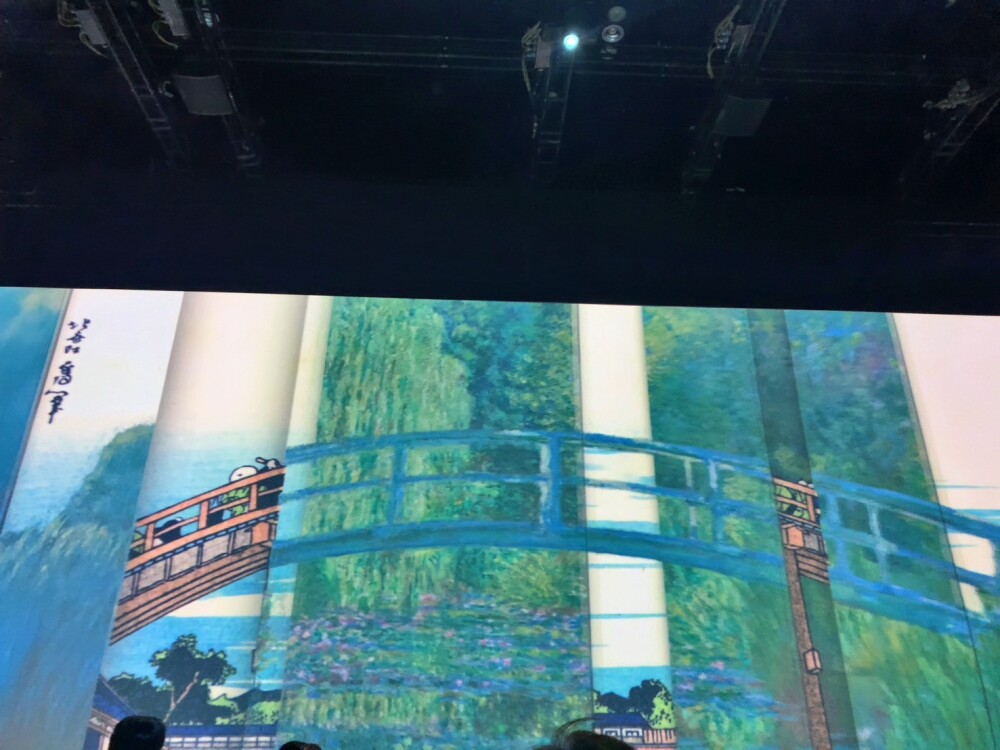 もう一つは、浮世絵と印象派の絵画が一緒に映し出されたこと。似た構図の絵画同士が並べて映し出されて、印象派が受けた浮世絵からの影響が非常にわかりやすかった。また、浮世絵がだんだん印象派の絵画に変化していく演出もあって、菊の浮世絵が映し出されると、「あ、ゴッホのヒマワリになるのかな」など、変化先の絵を予想するのが楽しかった。