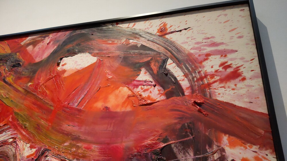 このように、白髪の絵画は全体の勢いのよさだけでなく、部分部分の豊かさもあることがわかる。こういう部分部分を近くから見たあと、もう一度全体を見ると、うまく統合できなくて混乱する。絵画の全体を捉えることができないのだ。抽象画だから、風景のようには全体を捉えることができないのはわかるのだが。