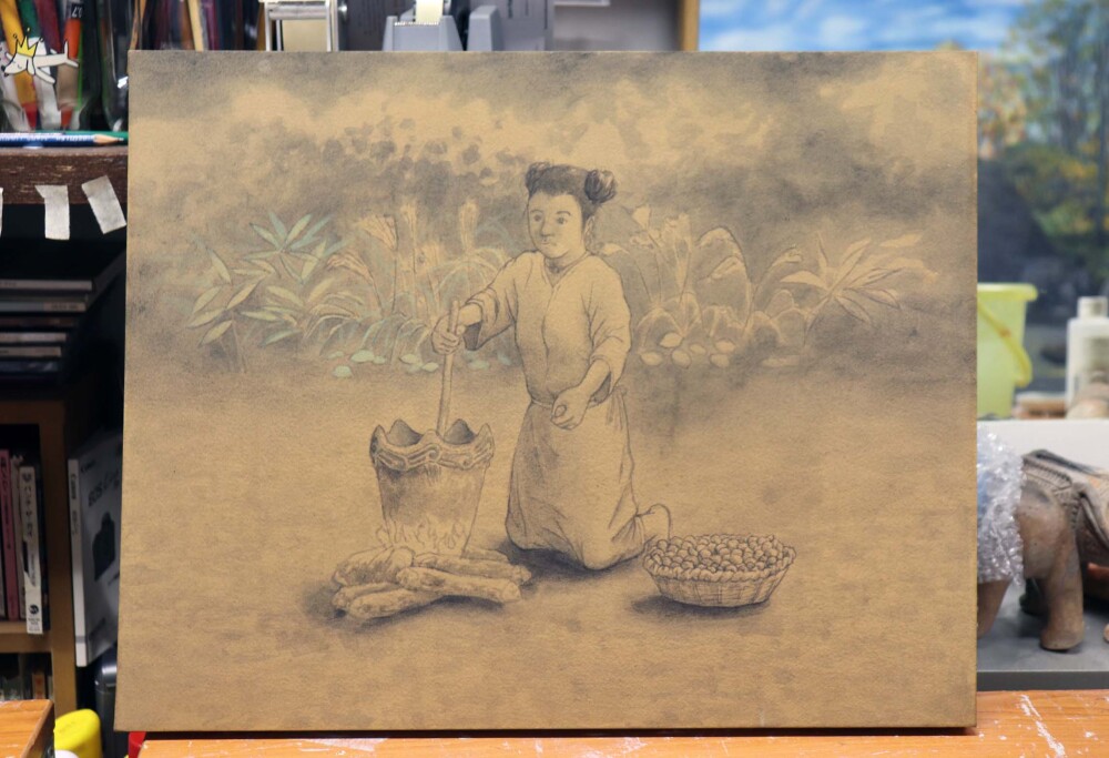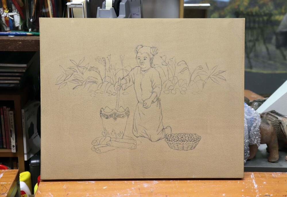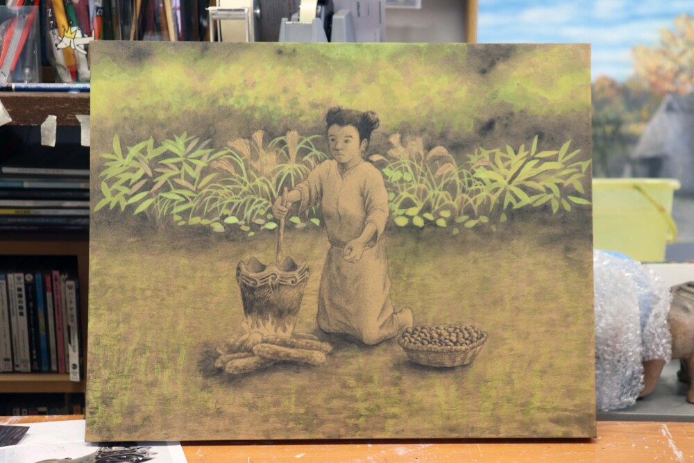 色を何度も変える。背景の位置も変える。文様も描きおこしながら、変える。油彩画制作中「土器土偶怪人模型箱絵原画(または土器土偶怪人カード)」(仮)2月の個展で展示予定。2026年2月9日(月)ー14日(土)ギャラリーSIACCA東京都中央区銀座2-9-16 サウ…