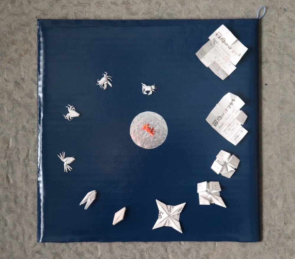 横浜駅から自転車で帰りの、通りがかりのアートスペースイワブチで、折紙細工、という看板が見えた。