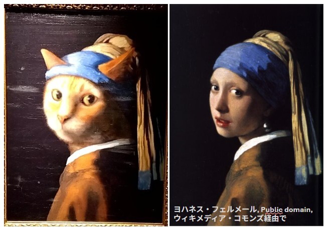 (左)青いターバンの猫 (右)真珠の耳飾りの少女