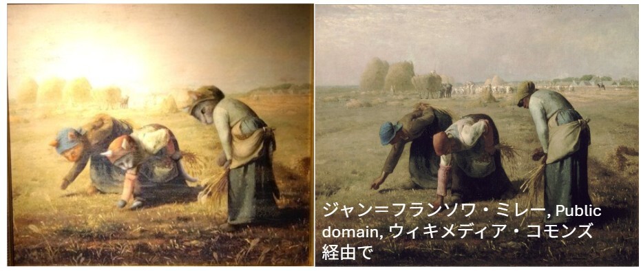 並べてみると、人間の絵の方は、緑と黄色味が少し強めで複雑な感じがしますね。やるな、人間!