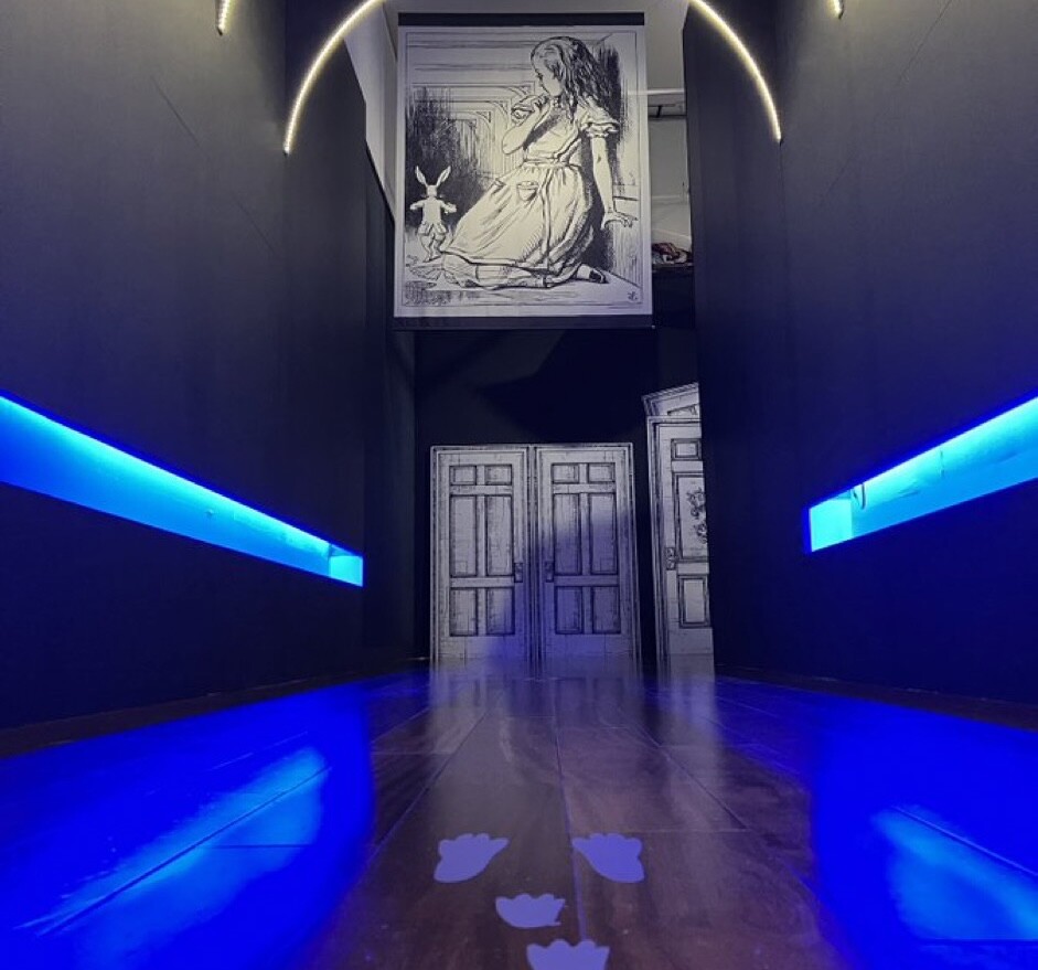 暗い会場内の壁や床に投影された迫力のあるゴッホの絵画…