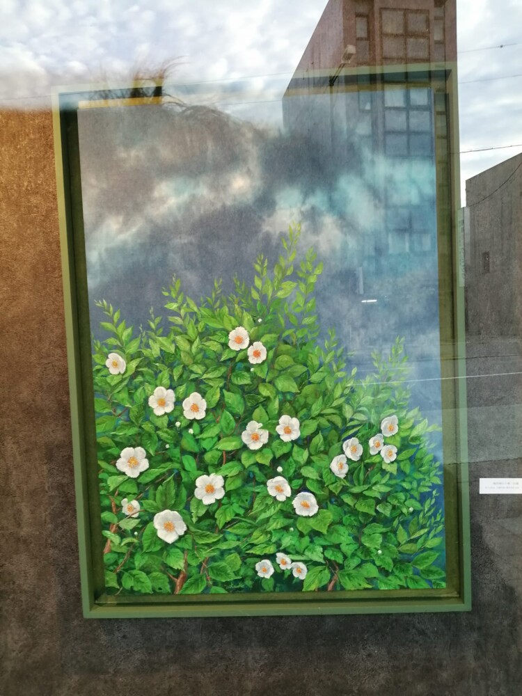 家田さんは美濃市出身で、美濃和紙を染めて風景や花鳥を描く画家です。私は以前から家田さんの作品に魅了されていて、今回の個展も楽しみにしていました。