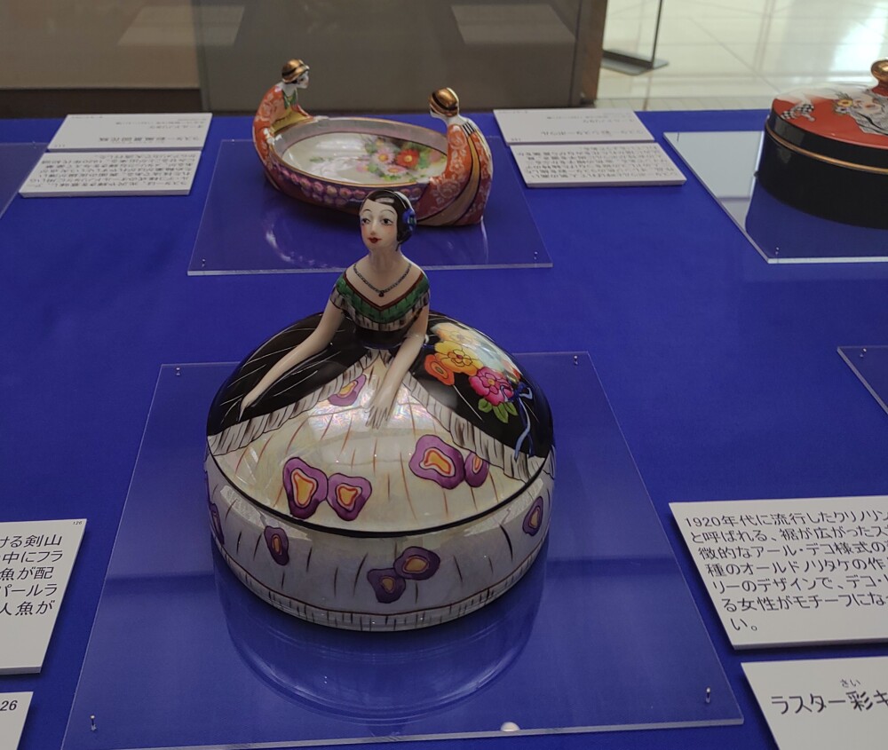 最後の展示室には、オールドノリタケの作品が50点近くあり、コンディメントセットやキャンディボックスなど、お洒落で可愛いものが展示されている。ノリタケの食器が好きな私は、うきうきしてしまった。