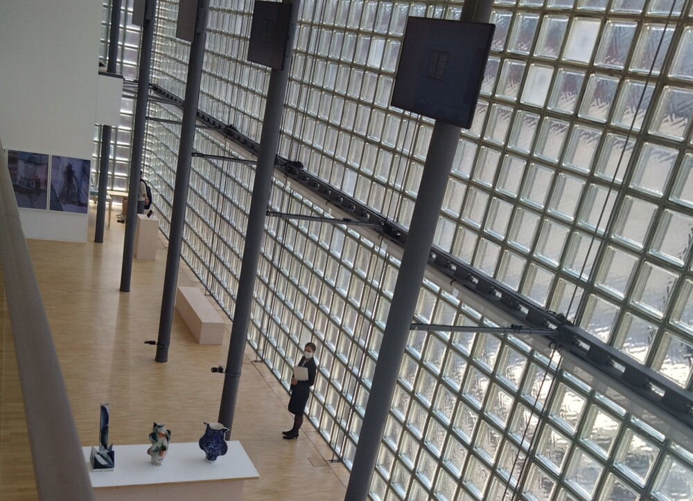 開場の1/3くらいは吹き抜けスペースになっていて、外に面する壁が全部ガラスブロックなためか照明不要レベルで明るい空間。