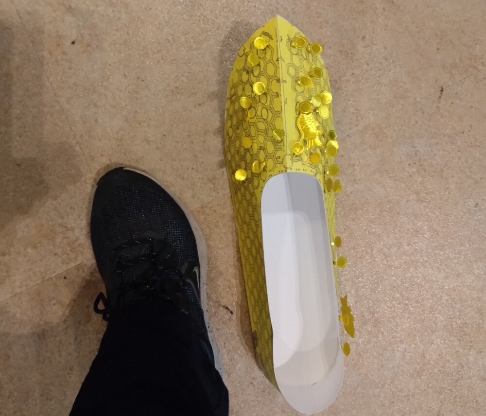 【ご自由にお試しください】との事でしたので、ちょっと自分の足と比較対照。デカい(笑)